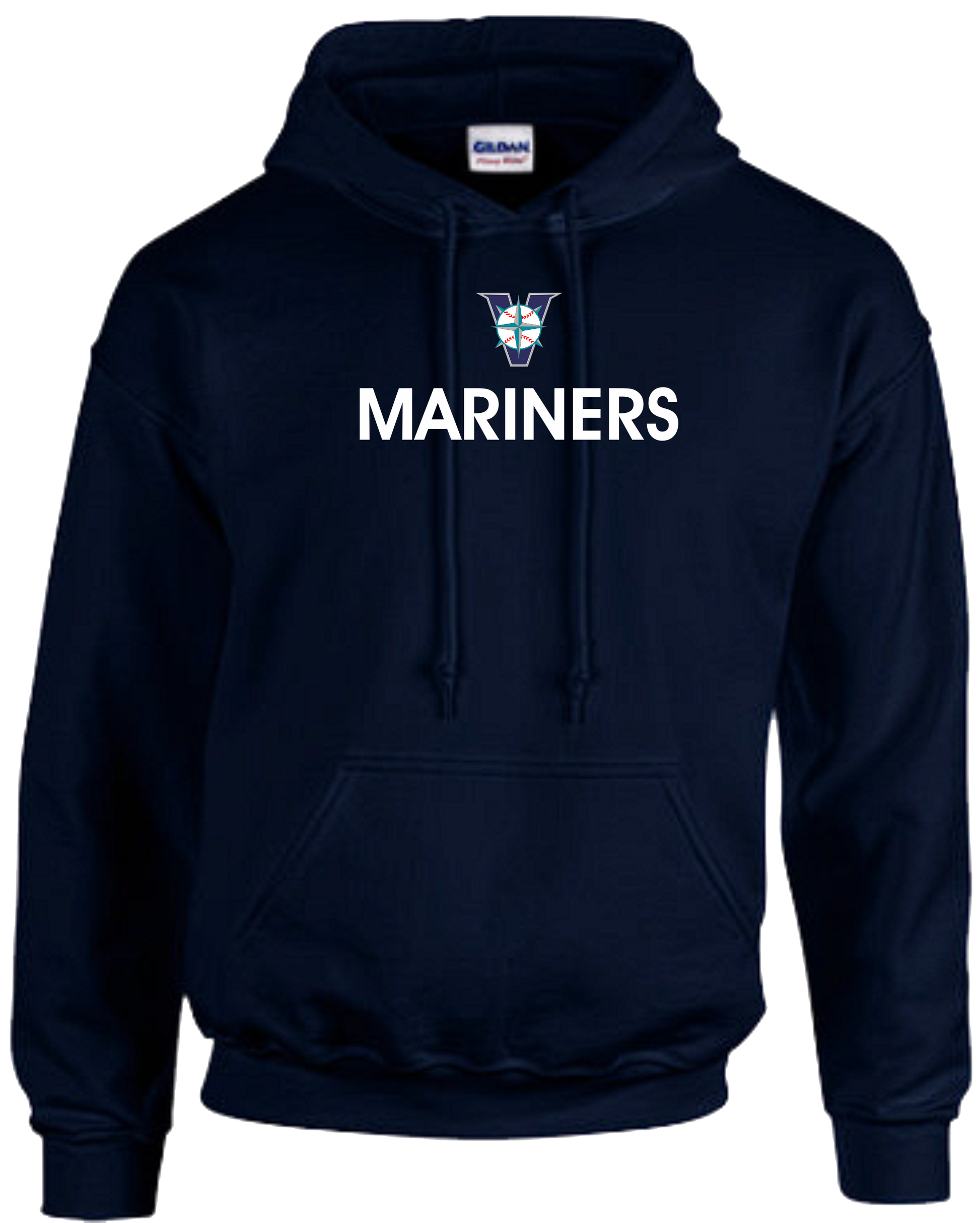 Cotton Pullover Unisex and Youth Hoodie with Screen Printed Full Front Victoria Mariners Baseball Club Logo.