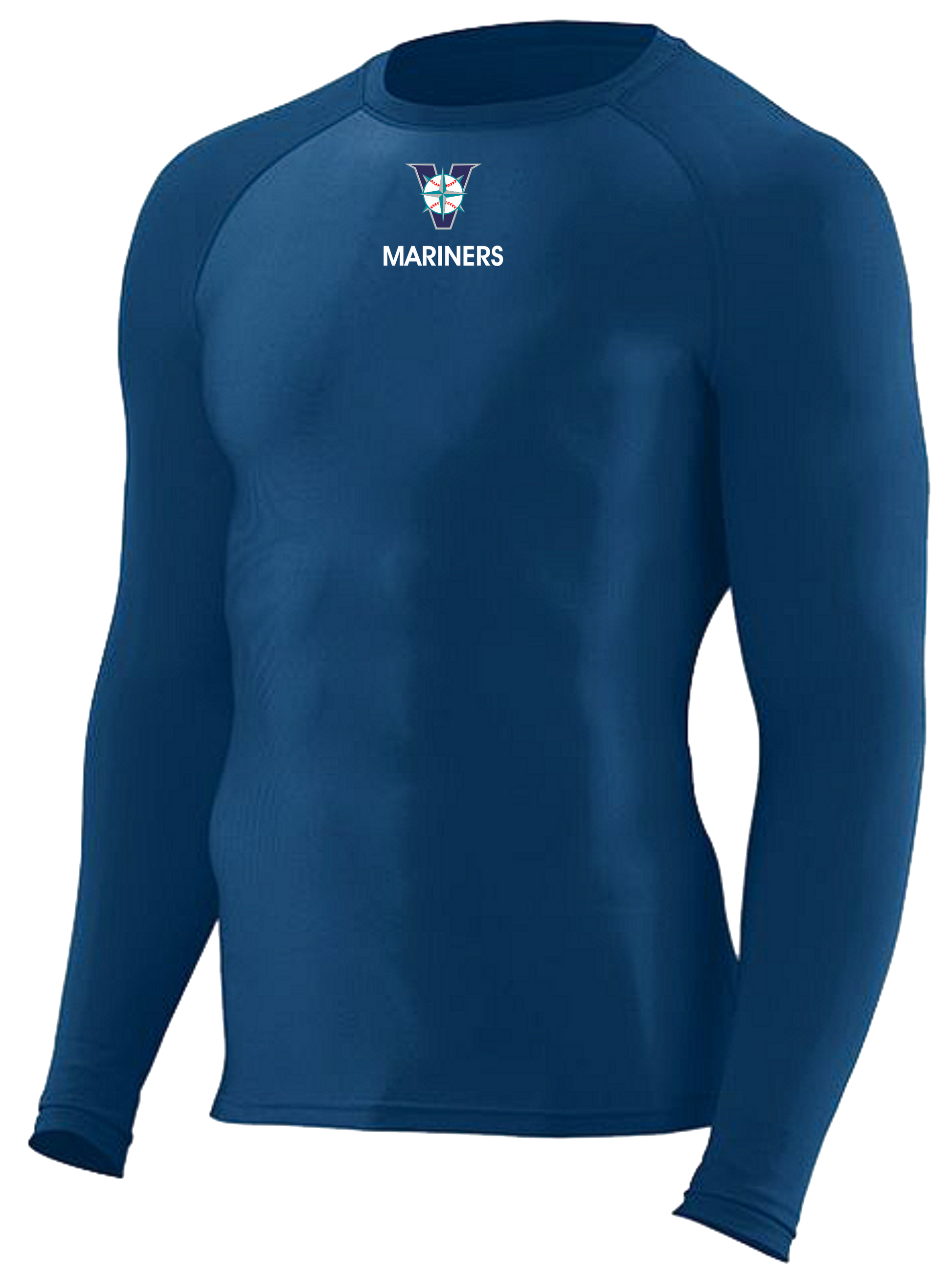 Unisex Long Sleeve COMPRESSION Tshirt with 2024 Victoria Mariners Baseball Club 'V' Logo.