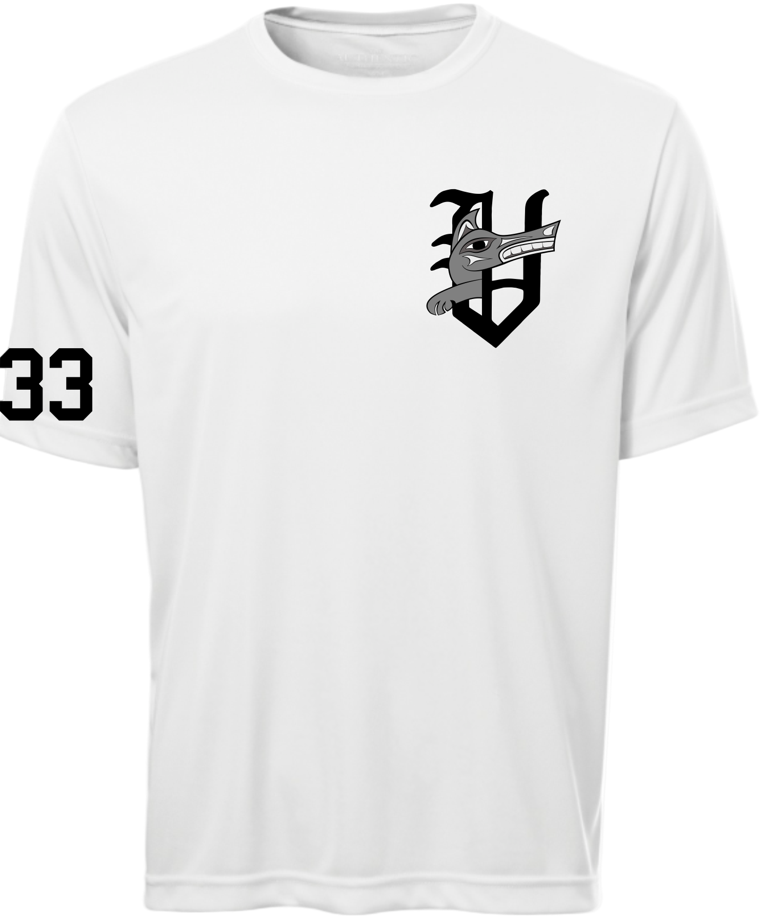 WHITE ATC Pro Team Unisex and Youth Short Sleeve DriFit Tshirt with Screen Printed Seawolves Indigenous Logo.