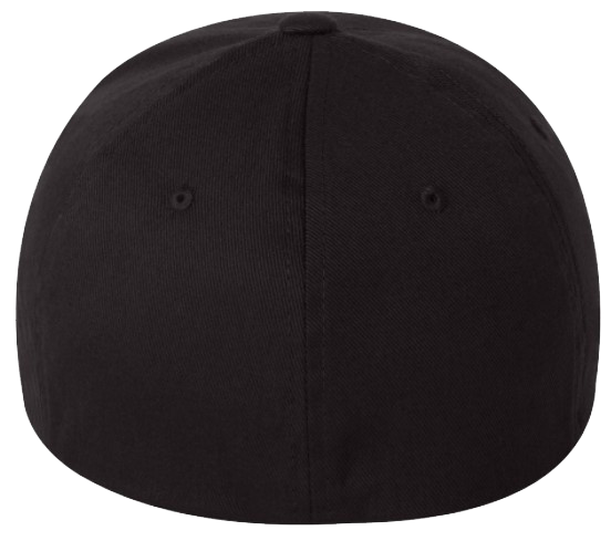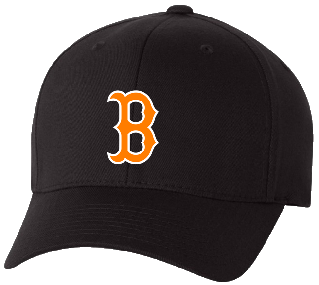 Black Flex Fit Hat, 63/34/3 polyester/cotton/spandex twill with Embroidery Front and Centre with The 'Puffy' B Beacon Hill Logo