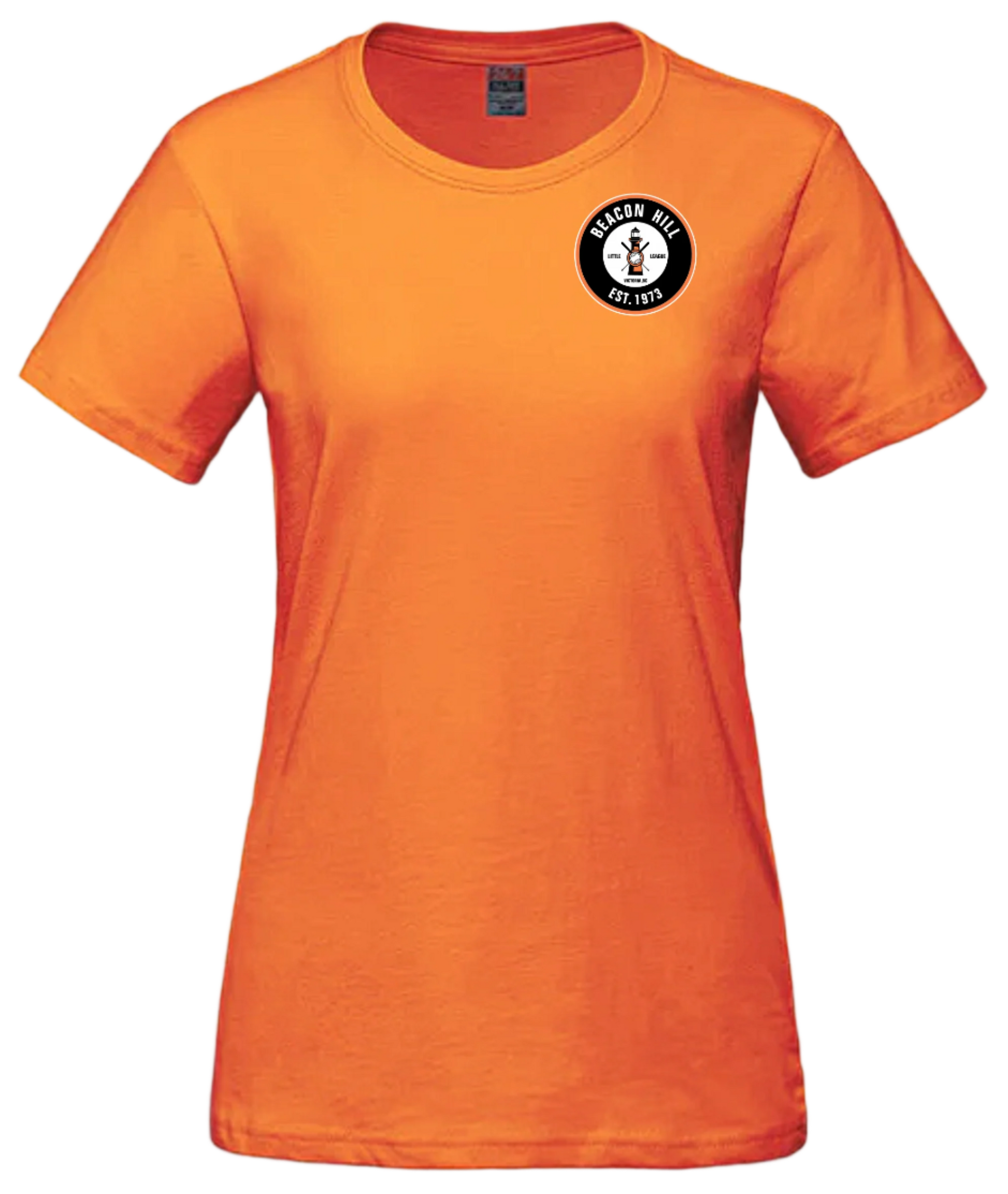 Orange Ladies 100% Ring Spun Cotton Tshirt with Screen Printed Full Front Beacon Hill Logo