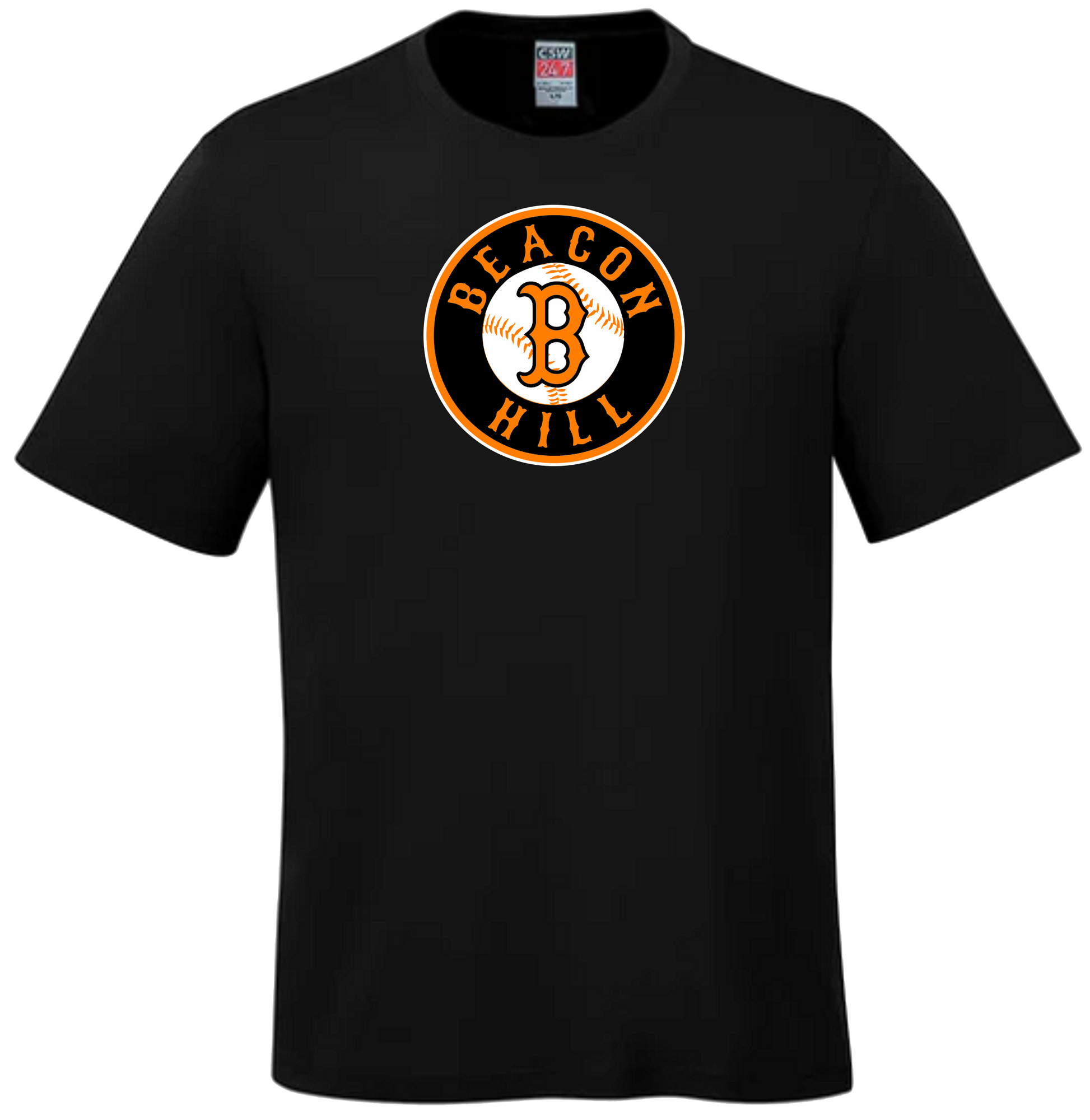 Black 100% Ring Spun Cotton Unisex and Youth Tshirt with Screen Printed Full Front Beacon Hill Logo