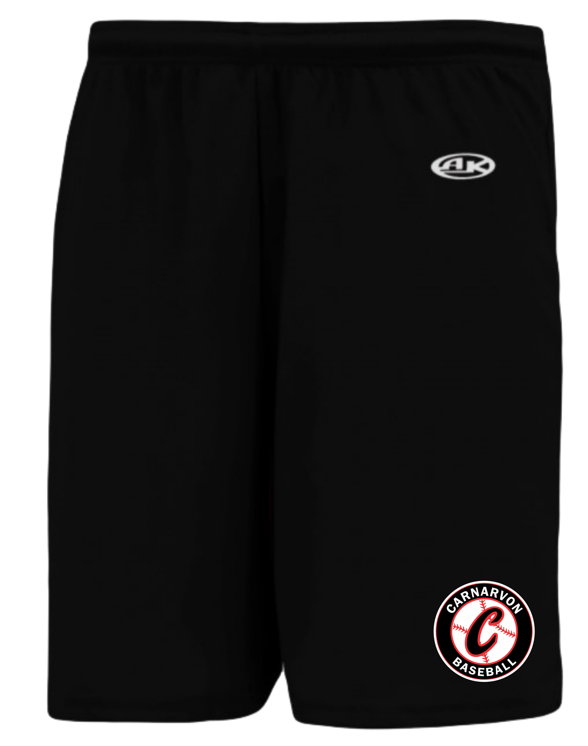 Athletic Knit Polyester Unisex and Youth Athletic Shorts with Screen Printed Left Leg Carnarvon Baseball Logo