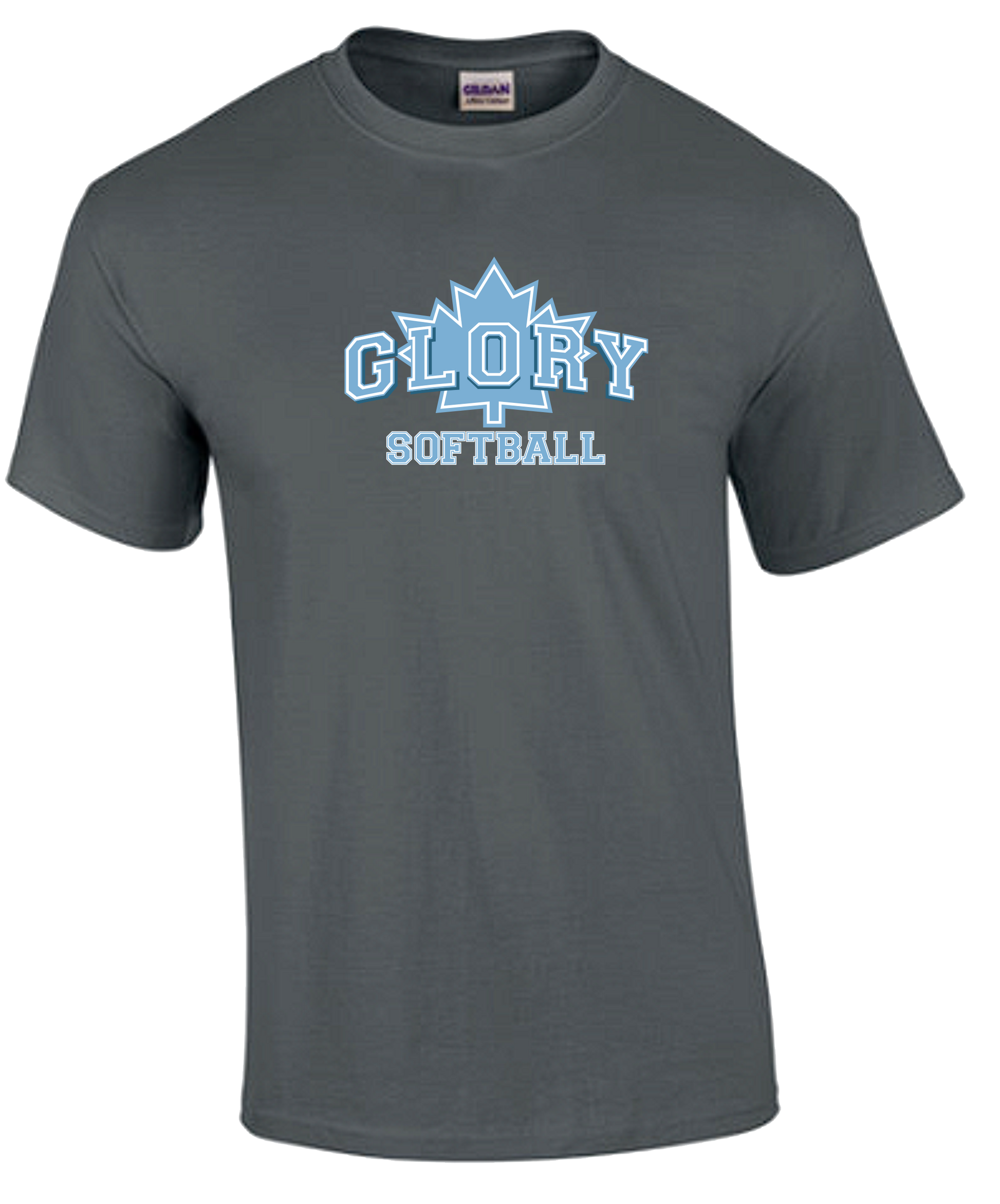 100% Cotton Tshirt available in Charcoal Grey with Screen Printed Full Front Glory Softball Logo