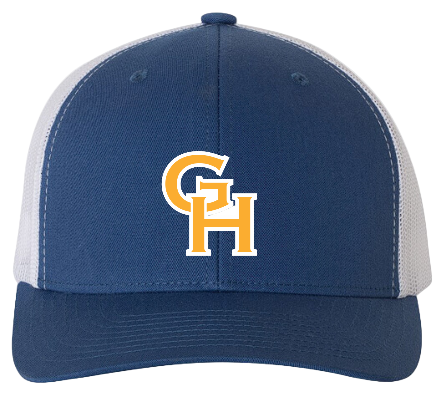 Royal Blue and White Trucker Hat with Gordon Head Baseball 'GH' Logo embroidered