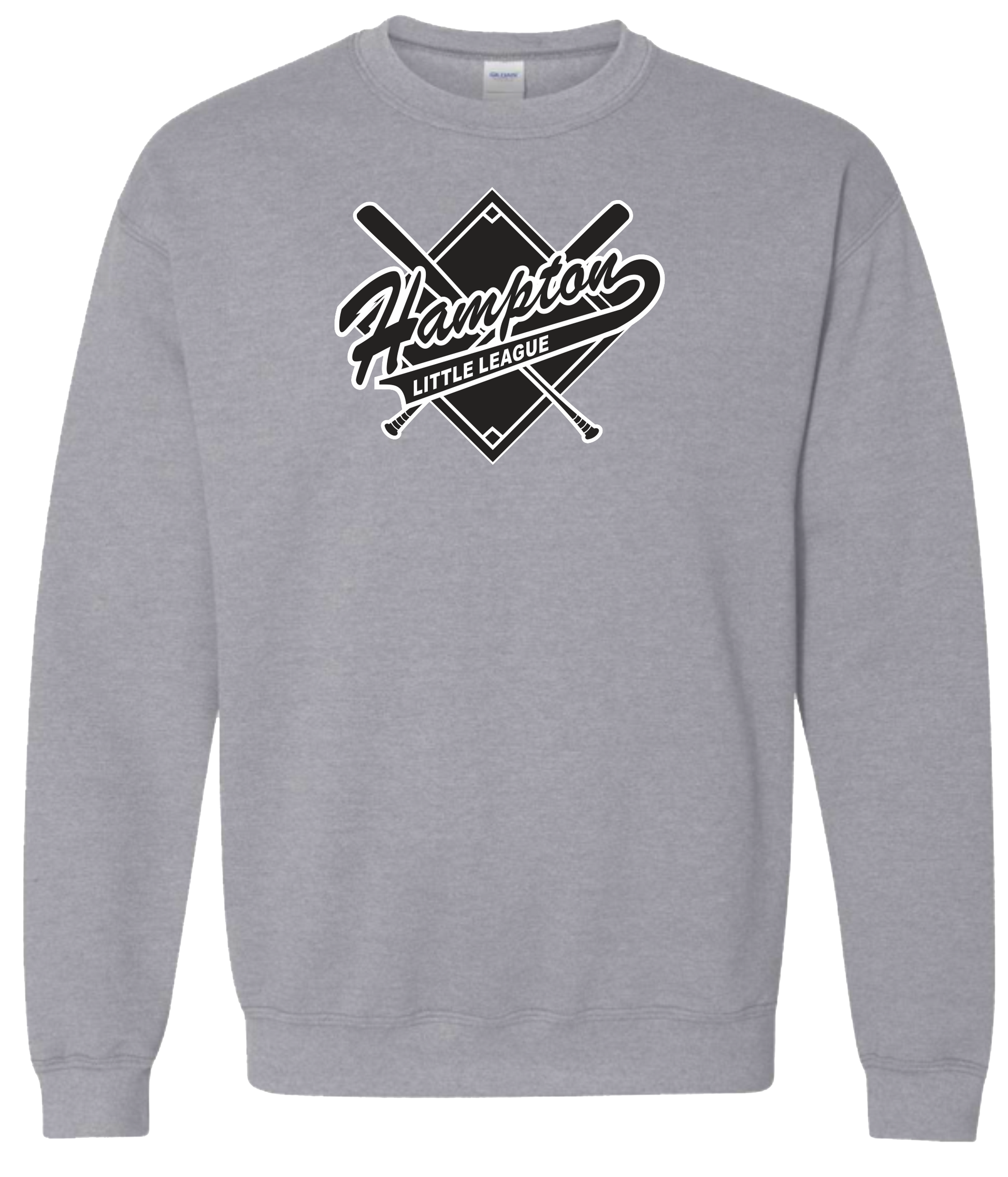 Sport Grey Unisex and Youth Crewneck Sweatshirt with Screen Printed Full Front Hampton Little League Crossed Bats Logo.