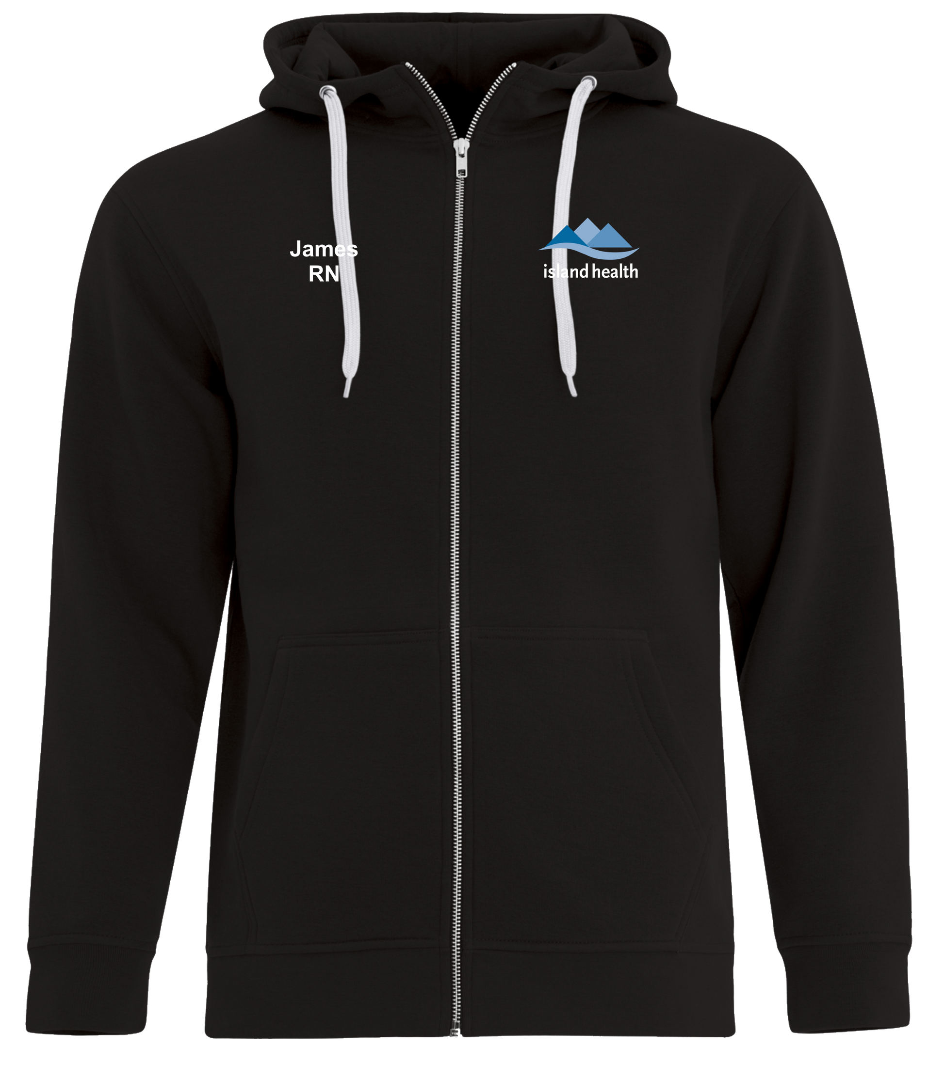 Premium Full Zip Hoodie with island health logo embroidered on the Left Chest