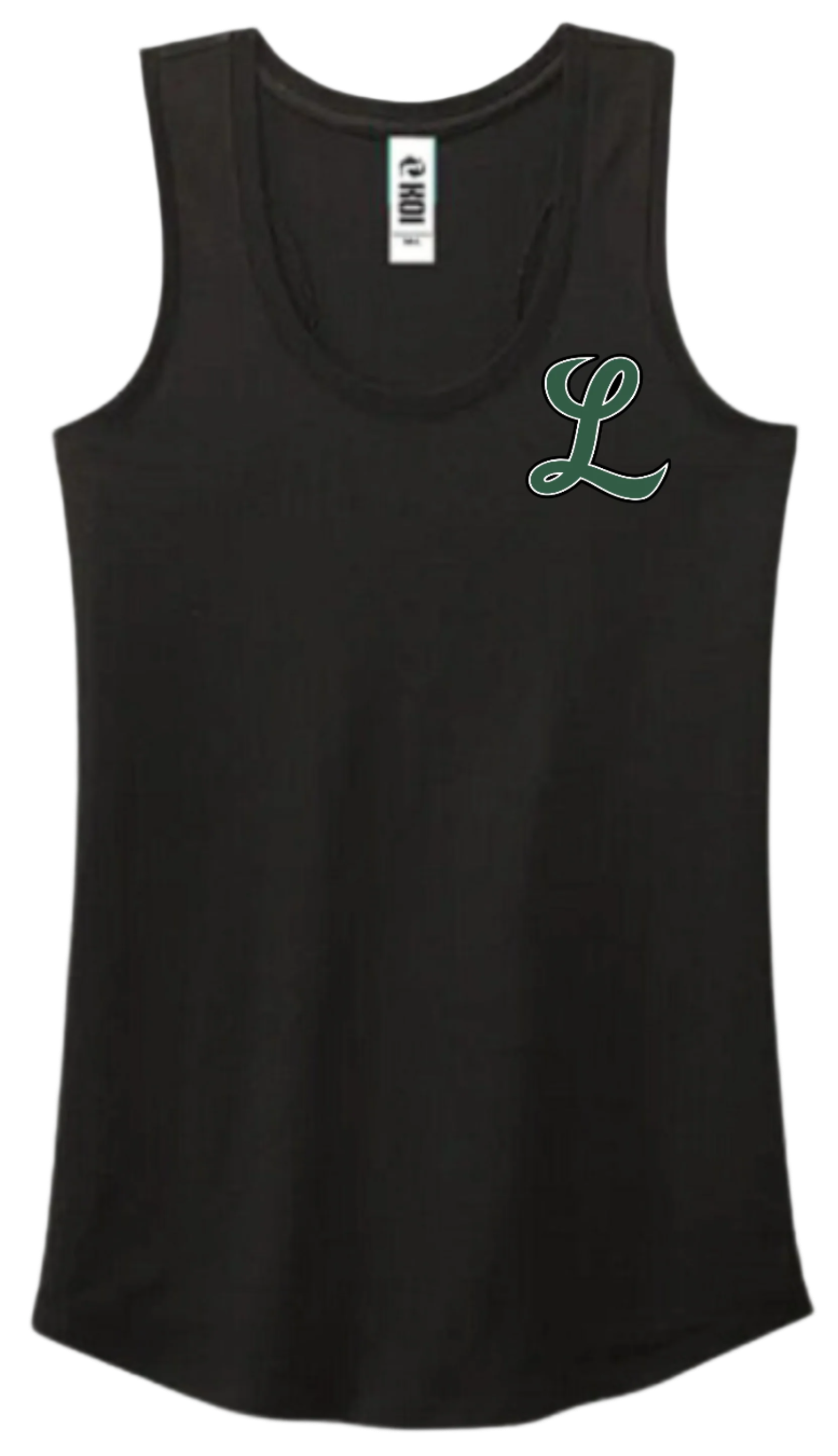 Cotton/Poly/Rayon Ladies Racer Back Black Tank Top with Screen Printed Left Chest Layritz Little League 'L' Logo.