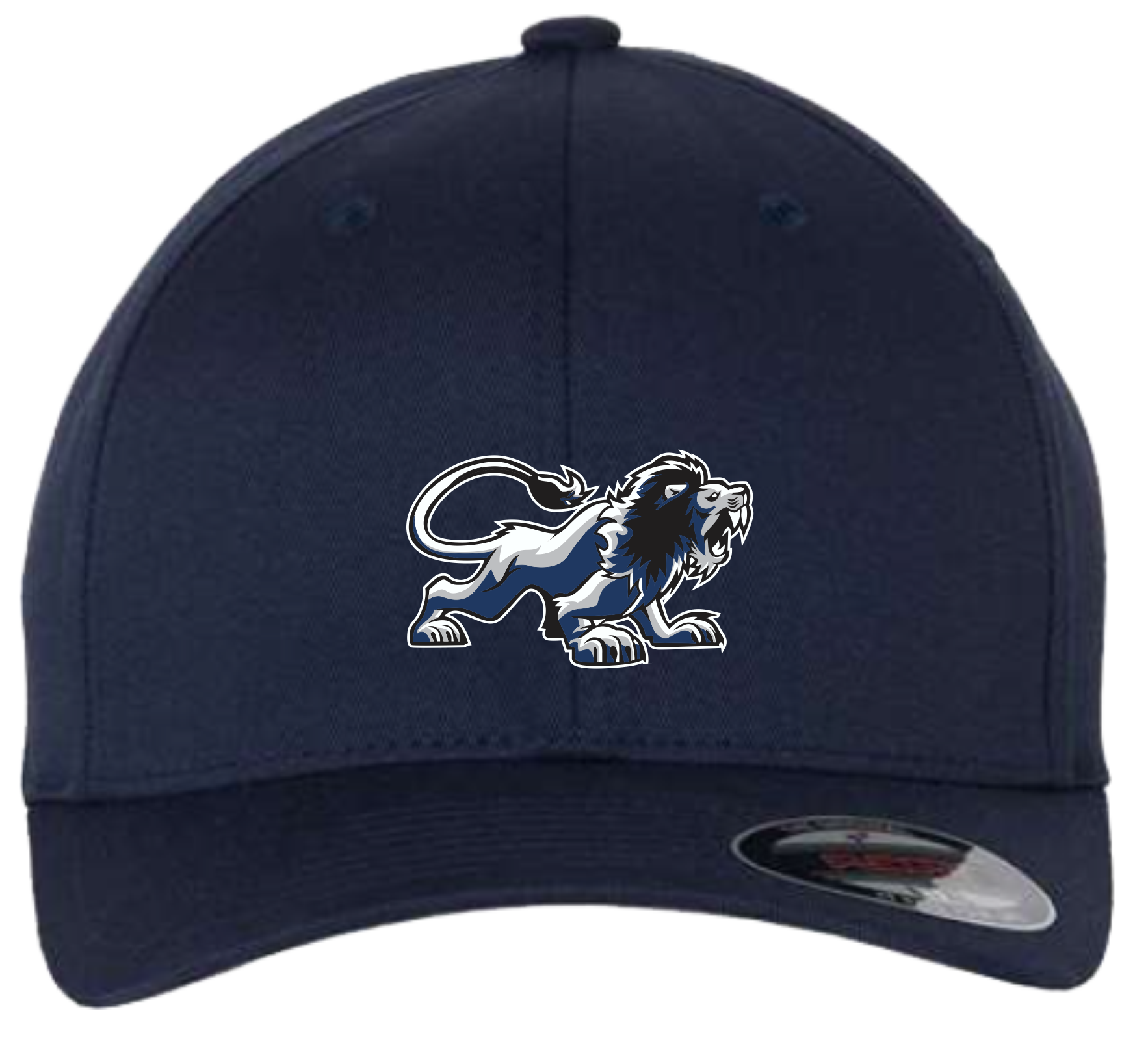Flex Fit Hat, 63/34/3 polyester/cotton/spandex twill with Embroidery Front and Centre with Lions Baseball Logo