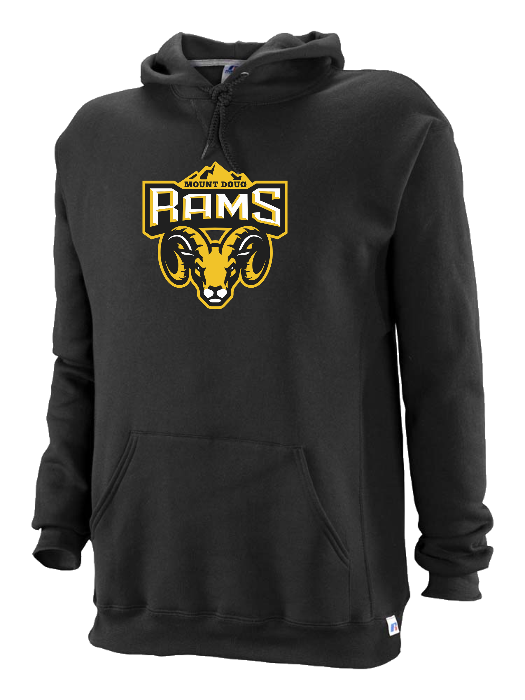 Russell Pullover Hoodie with Screen Printed Full Front Mount Doug Rams Football Logo.