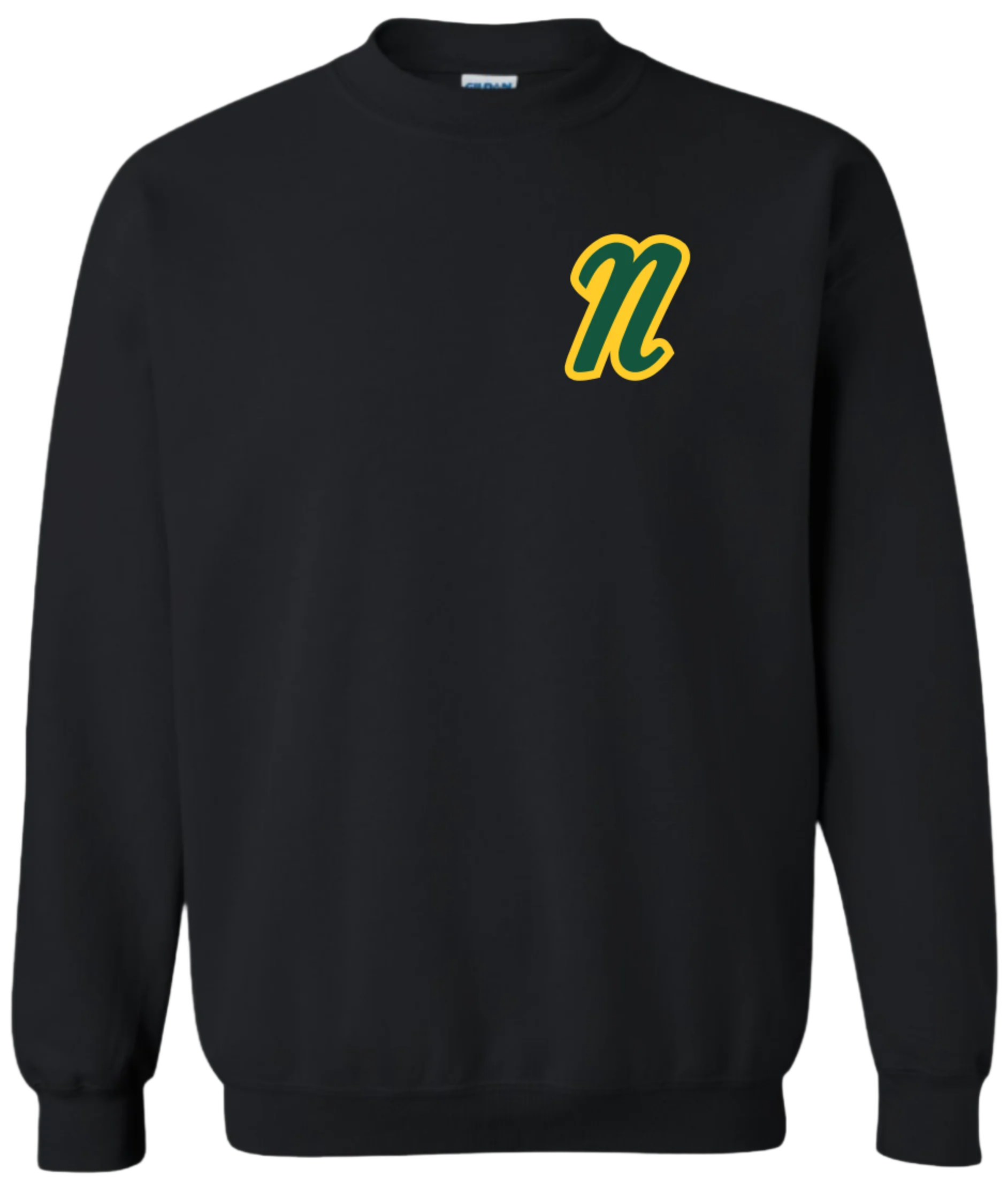 50/50 Unisex and Youth Black Crewneck Sweater with Screen Printed Left Chest National Little League Logo.