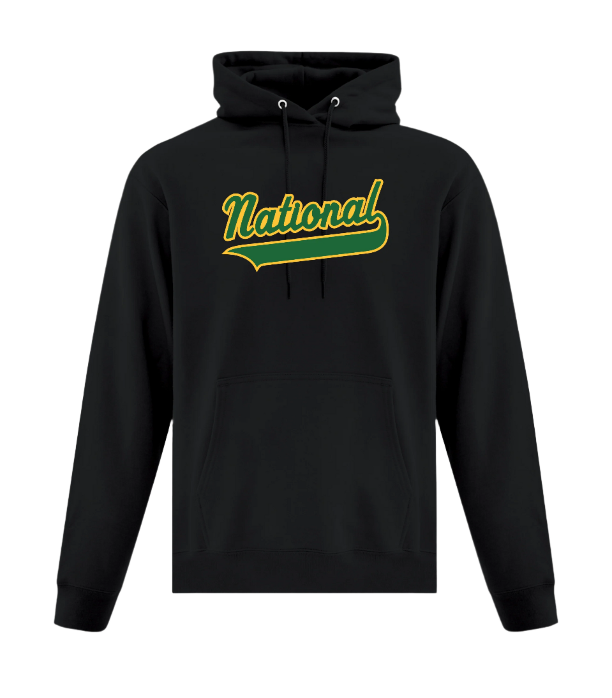 50/50 Unisex and Youth Black Pullover Hoodie with Screen Printed Full Front National Little Leauge Logo.