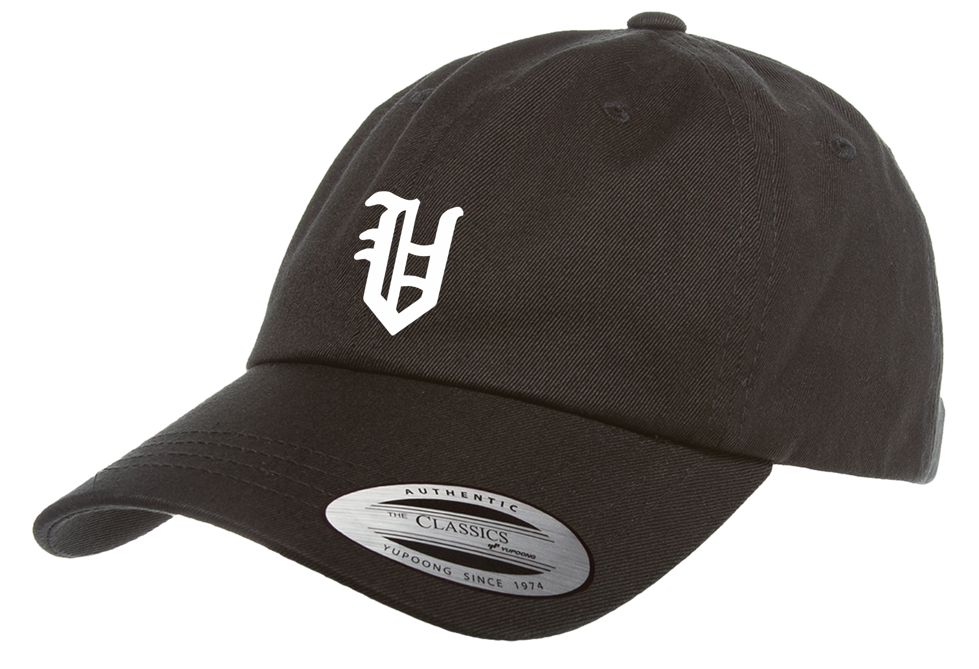 Yupoong Classic Dad Hat in Black, 100% cotton chino twill with Embroidery Front and Centre with Seawolves Logo
