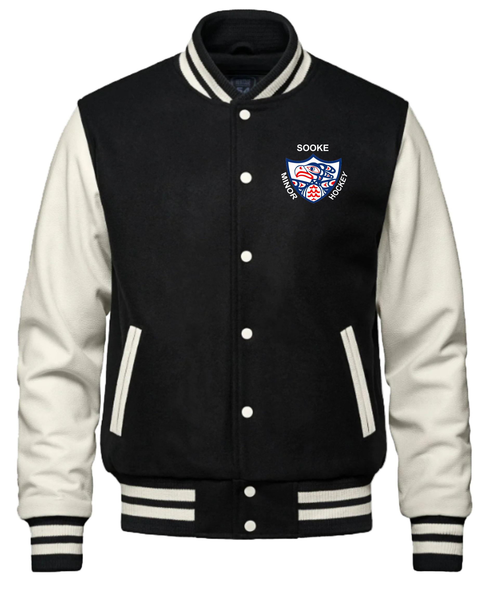 Varsity Melton and Leather Jacket with Embroidery Left Chest SDMHA Shield Logo.