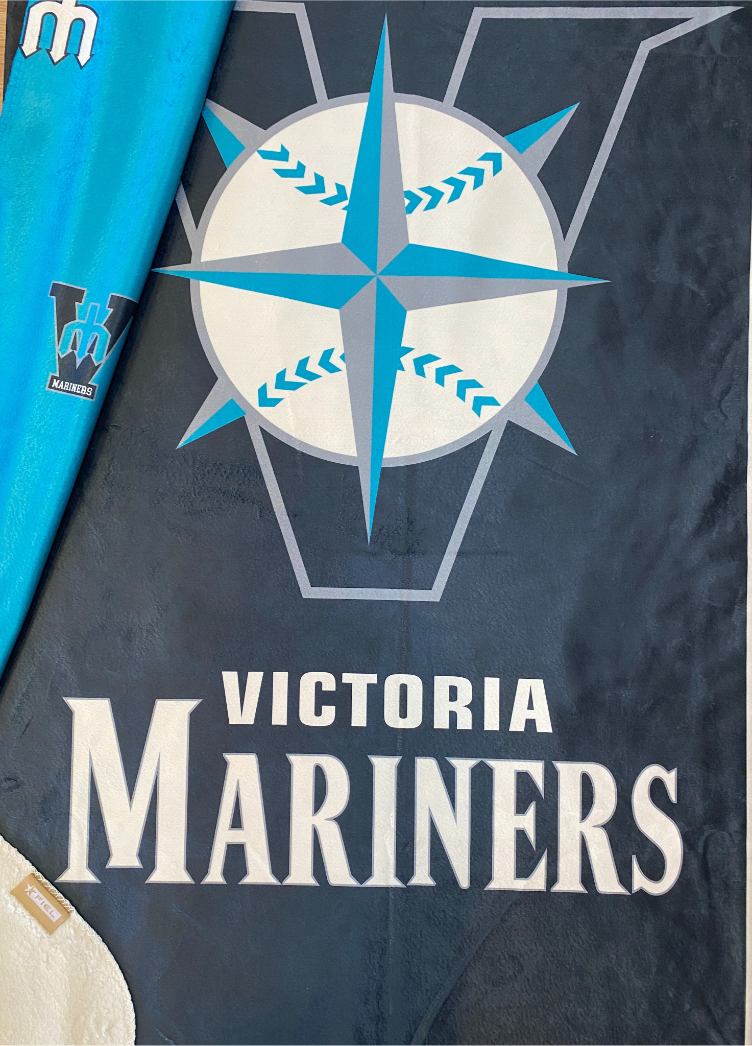 SHERPA Lined Micro Mink Throw Blanket with Victoria Mariners Baseball Logos