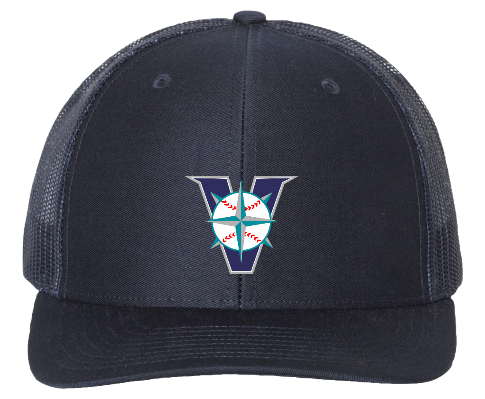 Snapback Trucker Hats with Victoria Mariners Baseball Club 'V' Logo Embroidered Front and Centre