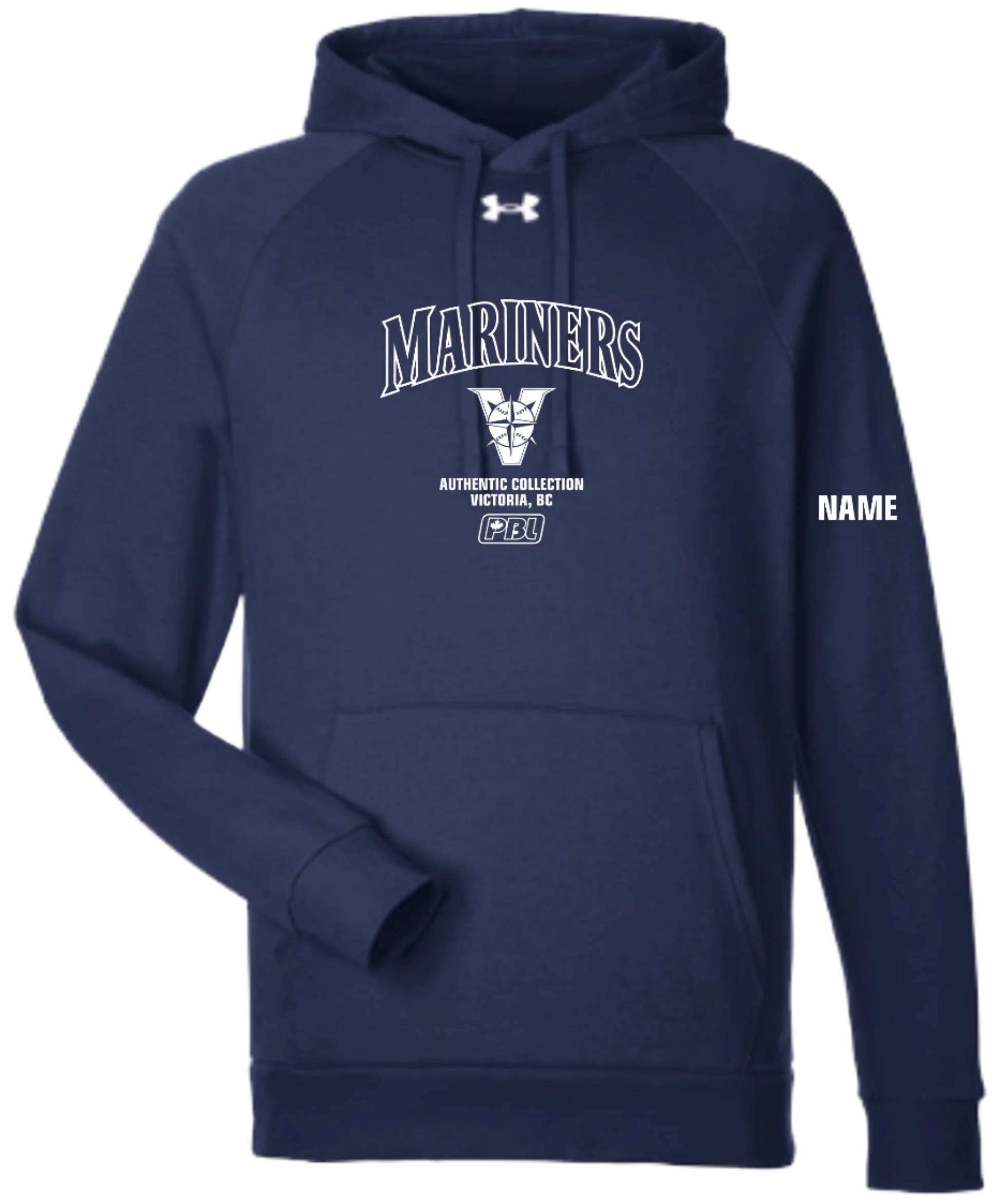 Under Armour Pullover Unisex and Youth Hoodie with Screen Printed Full Front Victoria Mariners Logo with NAME included.