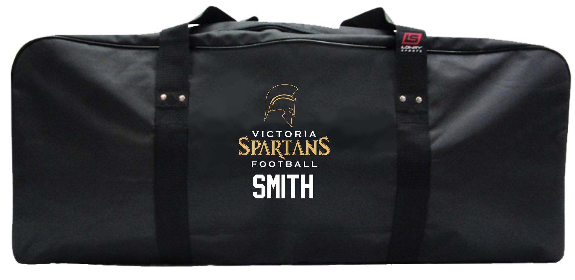 600 denier nylon Gear Bag with Screen Printed Victoria Spartans Football Logo and Name underneath in White.