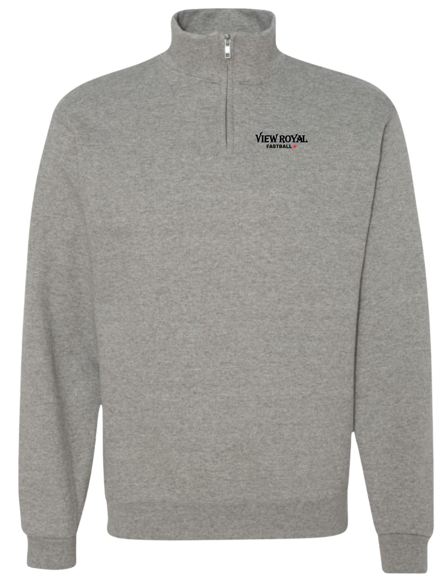 Oxford Grey Unisex 1/4 Zip Sweatshirt with Embroidered Left Chest View Royal Fastball Logo.